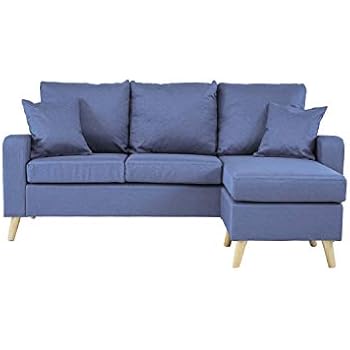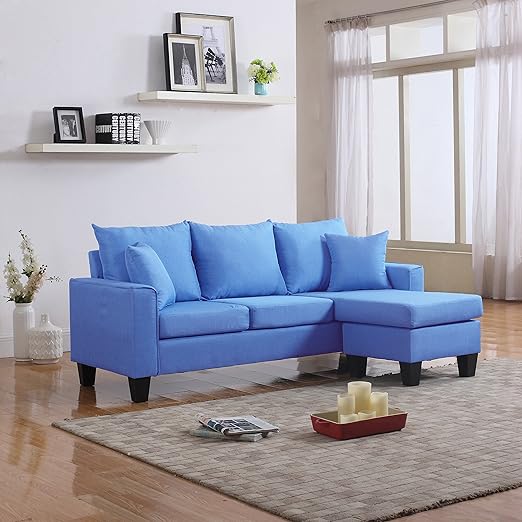 Divano Roma Furniture Modern Linen Fabric Small Space Sectional Sofa With Reversible Chaise Sky Blue