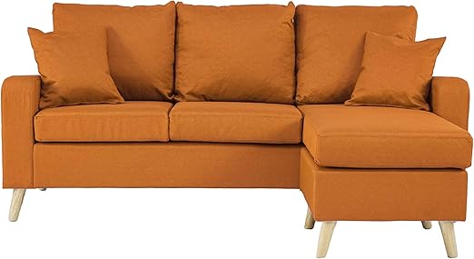 Divano Roma Furniture Mid Century Modern Linen Fabric Small Space Sectional Sofa With Reversible Chaise Orange