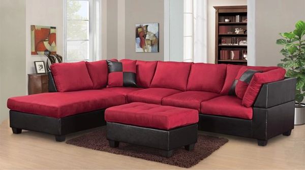 2327 Red Microfiber Sectional Optional Ottoman