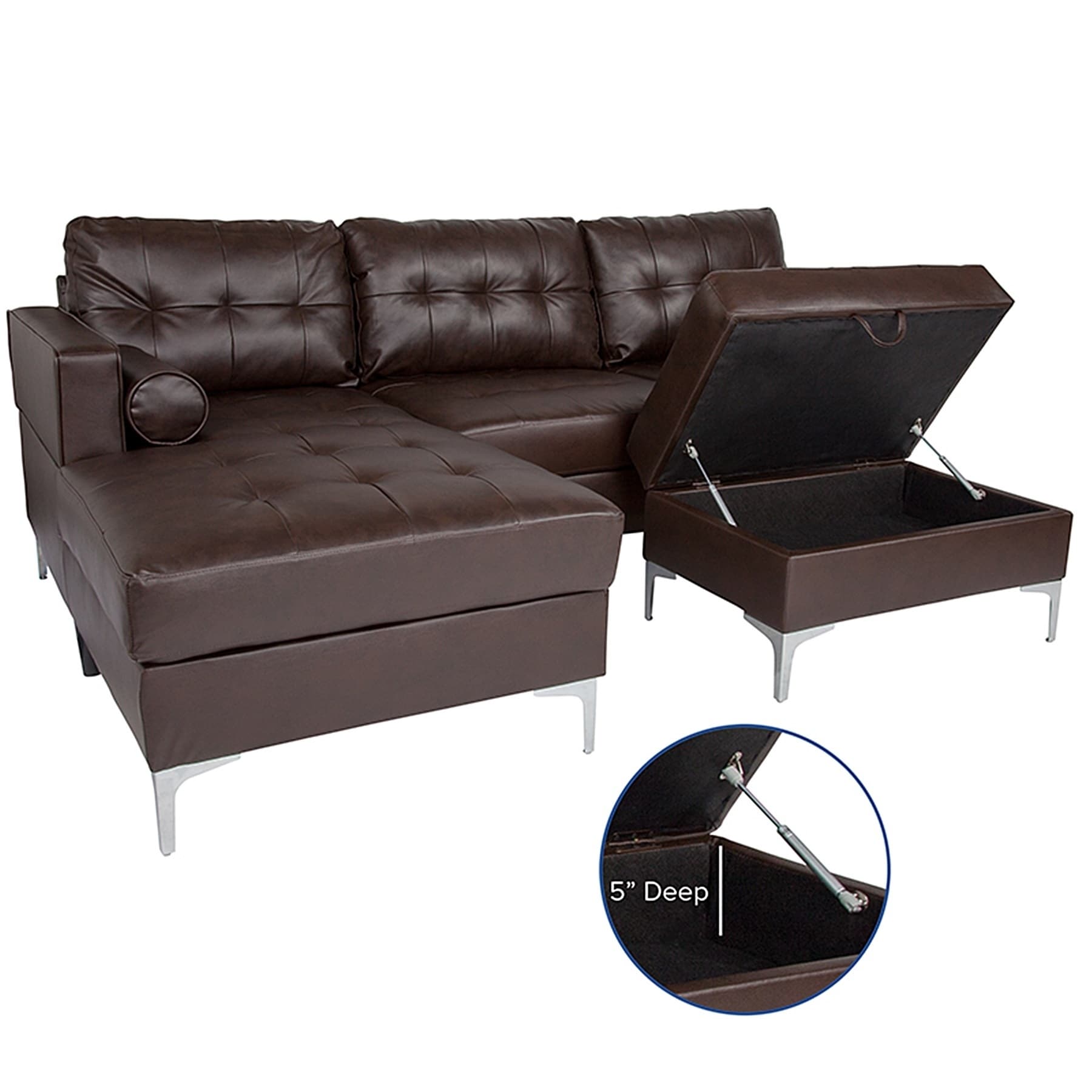 Bellmore 3 Piece Brown Leather Sectional Sofa With Left Facing Chaise And Storage Ottoman