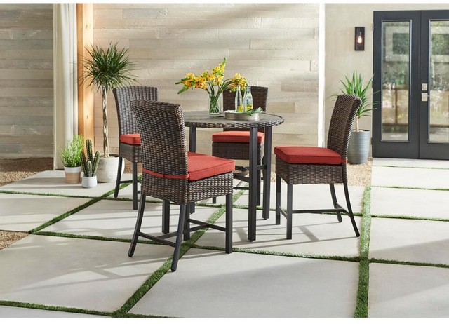 Hampton Bay Dark Brown 5 Piece Wicker Patio Furniture Outdoor Bar Dining Set
