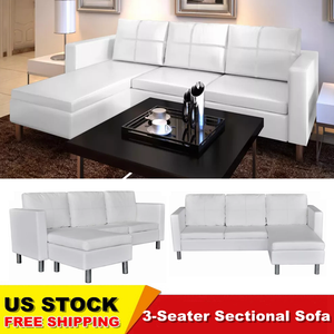 Details About 3 Pieces Corner Leather Sofa Sectional Set Living Room Furniture White Chic Usa