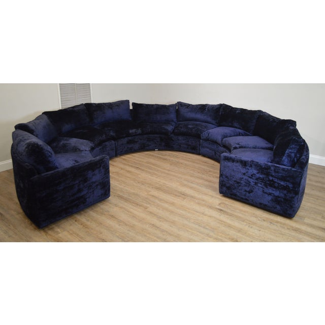 Mid Century Modern Blue Curved Circular Sectional Sofa