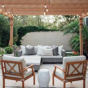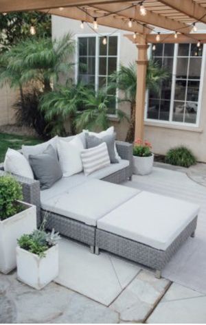 Long lingering nights with friends and family are just five easy pieces away with the belham living brookville all weather outdoor wicker sofa sectional setwith rust resistant aluminum frames the sofa right arm sectional and three ottomans are all covered in flat weave resin wicker in a cool gray hue. Long lingering nights with friends and family are just five easy pieces away with the belham living brookville all weather outdoor wicker sofa sectional setwith rust resistant aluminum frames the sofa right arm sectional and three ottomans are all covered in flat weave resin wicker in a cool gray hue.