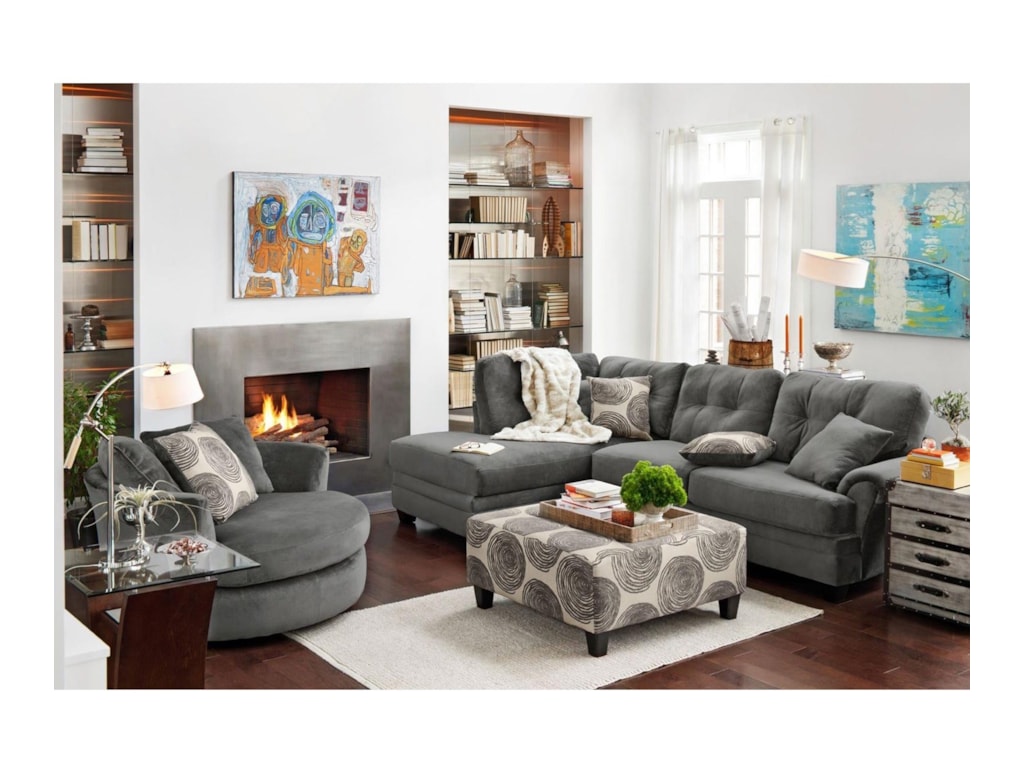 This sectional sofa is adorned in signature smoke ultra plush fabric. Luxurious suede like sectional will surely be the most popular seat in the house. Sign up for special savvy offers.