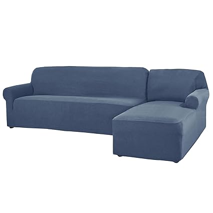 Chun Yi 2 Pieces L Shaped Jacquard Polyester Stretch Fabric Sectional Sofa Slipcovers Right Chaise Denim Blue