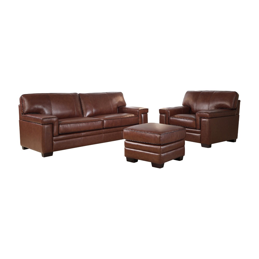 Evan Top Grain Leather Sofa Chair And Ottoman Set Brown