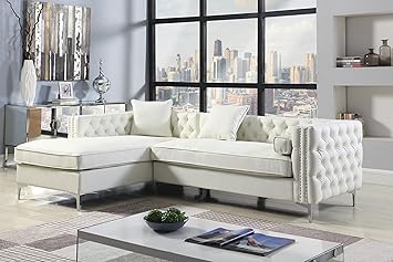 Iconic Home Da Vinci Left Hand Facing Sectional Sofa L Shape Chaise Pu Leather Button Tufted With Silver Nailhead Trim Silvertone Metal Leg With 3