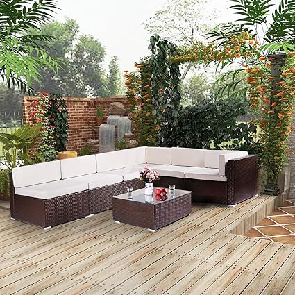 Esright 7 Pieces Patio Pe Rattan Wicker Sofa Sectional Furniture Brown