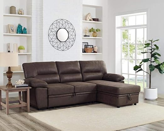Lilola Home Kipling Brown Microfiber Reversible Sleeper Sectional Sofa Storage Chaise