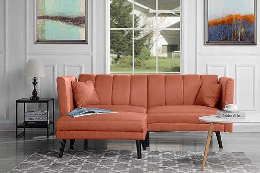 Futon Sleeper Sofa Bed Couch Convertible Orange Futon Splitback Sofa With Chaise Sofa To Bed Feature Modern Futon Sofa Beds L Shaped Lounger Futon