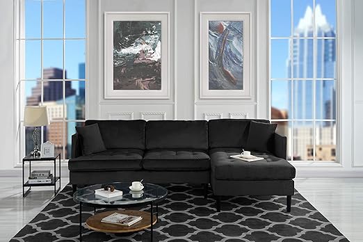 Mid Century Modern Tufted Velvet Sectional Sofa L Shape Couch Black