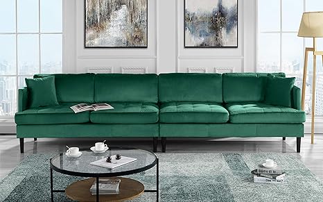 Mid Century Modern Extra Large Velvet Sofa Living Room Couch Green