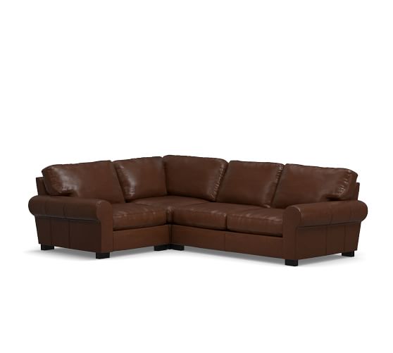 Turner Roll Arm Leather 3 Piece Sectional With Corner