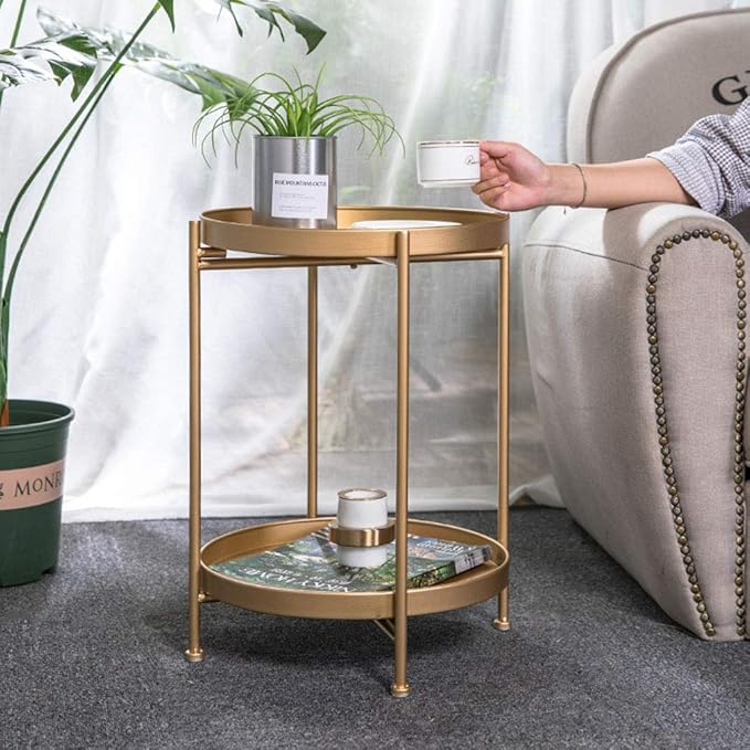 Amazon Com Tray Metal End Side Table 2 Tier Round Gold Sofa