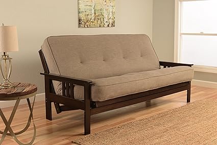 Kodiak Montreal X Espresso Futon Frame W Quality 8 Inch Innerspring Mattress Sofa Bed Set Full Size Stone Linen Matt And Frame Only