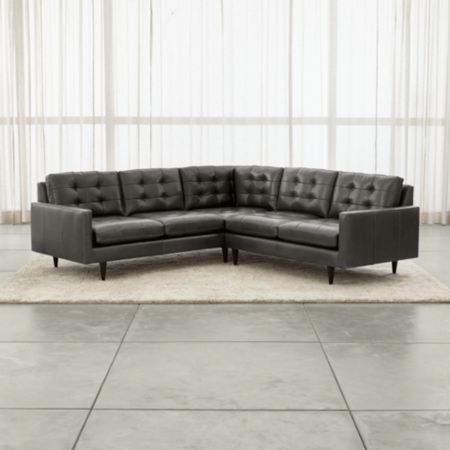 Petrie Leather 2 Piece Corner Midcentury Sectional Sofa