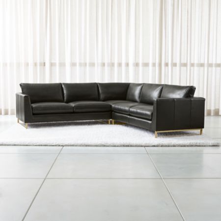 Tyson Leather 3 Piece Left Corner Sectional With Brass Base Crate And Barrel