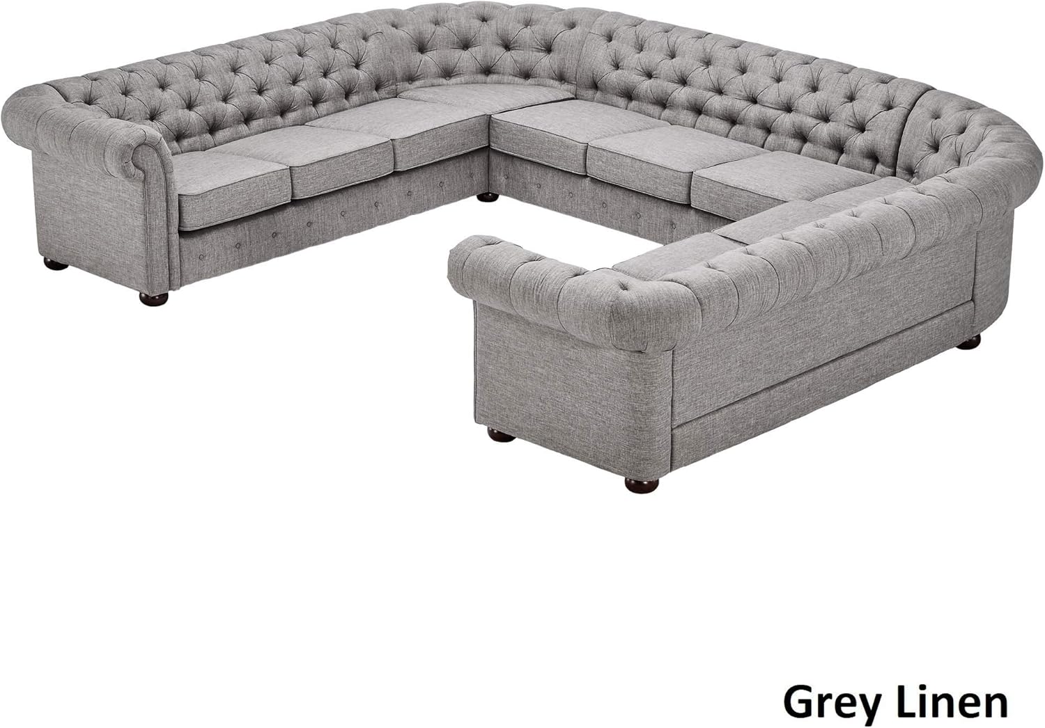 Inspire Q Knightsbridge Tufted Scroll Arm Csterfield 11 Seat U Shaped Sectional By Artisan Grey