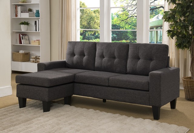 Living Room Simple Comfort Family Couch Sectional Sofa Set Charcoal Linen Fabric
