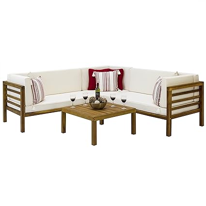 Best Choice Products Outdoor Patio Furniture 4 Piece Acacia Wood Sectional Sofa Set Water Resistant Cushions Brown
