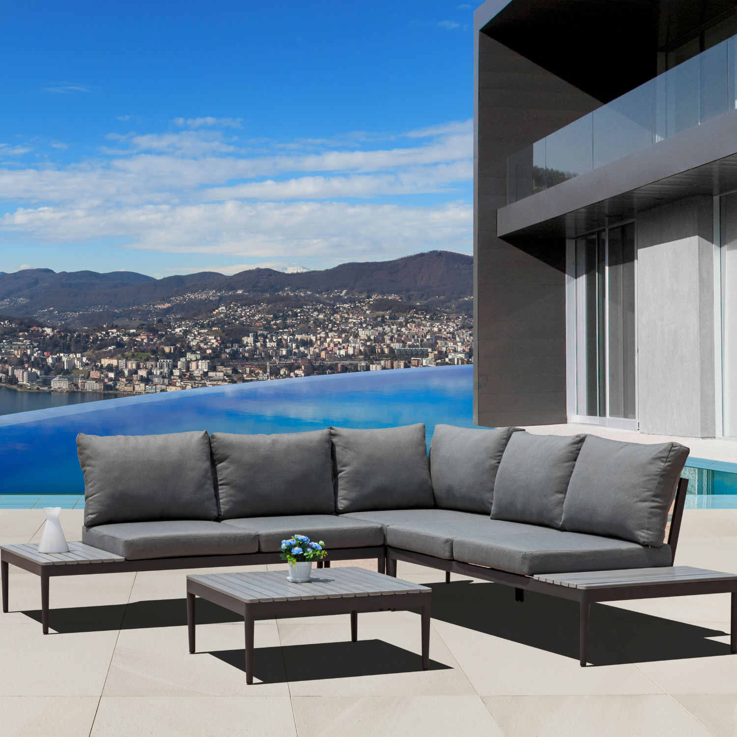 Shade Indoor Outdoor Sectional Sofa Coffee Table In Grey Fabric Aluminum By Whiteline Modern Living