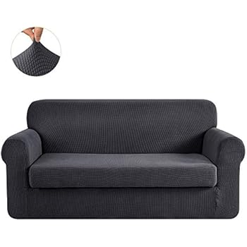 Chun Yi Stretch Loveseat Sofa Slipcover 2 Piece Couch Cover Furniture Protector 2 Seater Coat Soft With Elastic Bottom Checks Spandex Jacquard