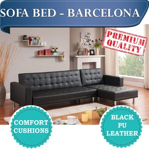 Details About Brand New Black Pu Leather Sectional Corner Sofa Bed L Shaped Barcelona
