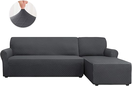 Chun Yi 2 Pieces Rhombus Jacquard Polyester Right Chaise L Shape Sectional Sofa Cover Stretch Fabric L Shaped Sectional 2 Seats Couch Covers