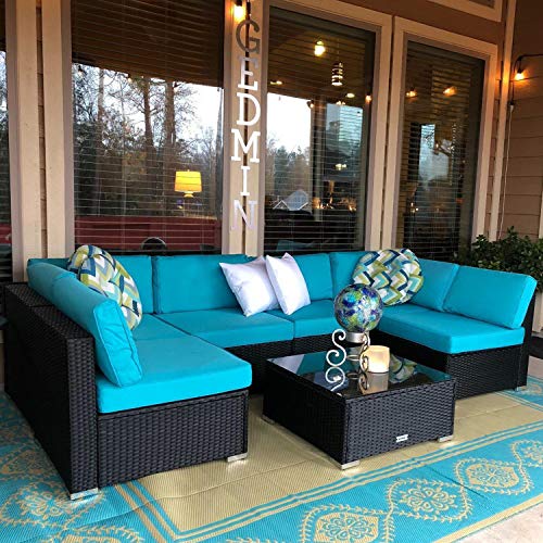 Peach Tree 7 Pcs Outdoor Patio Pe Rattan Wicker Sofa Sectional Furniture Set With 2 Pillows And Tea Table