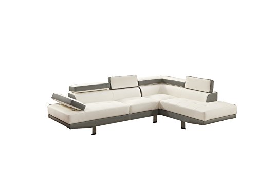 Poundex Bobkona Burney Faux Leather Sectional With Adjustable Back Arm In Grey White Two Tone