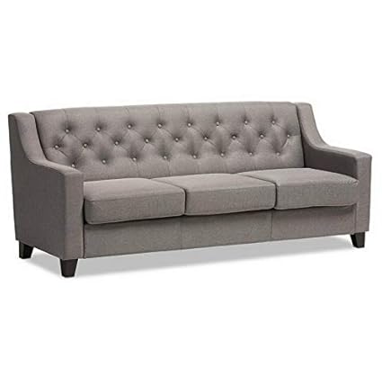 Baxton Studio Arcadia Light Beige Grey Fabric Upholstered Button Tufted 2 Piece Sectional Sofa