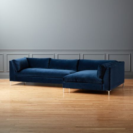 Decker 2 Piece Blue Velvet Sectional Sofa