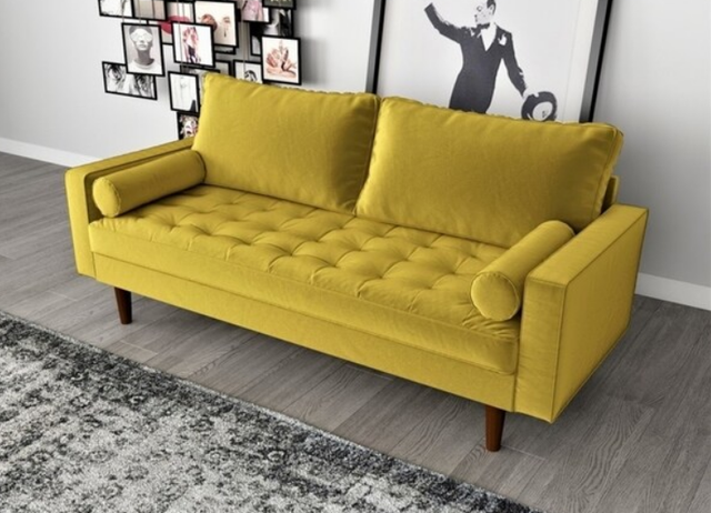 Mid Century Modern Sofa Couch Gold Velvet Home Furniture Apartment 3 Seater New
