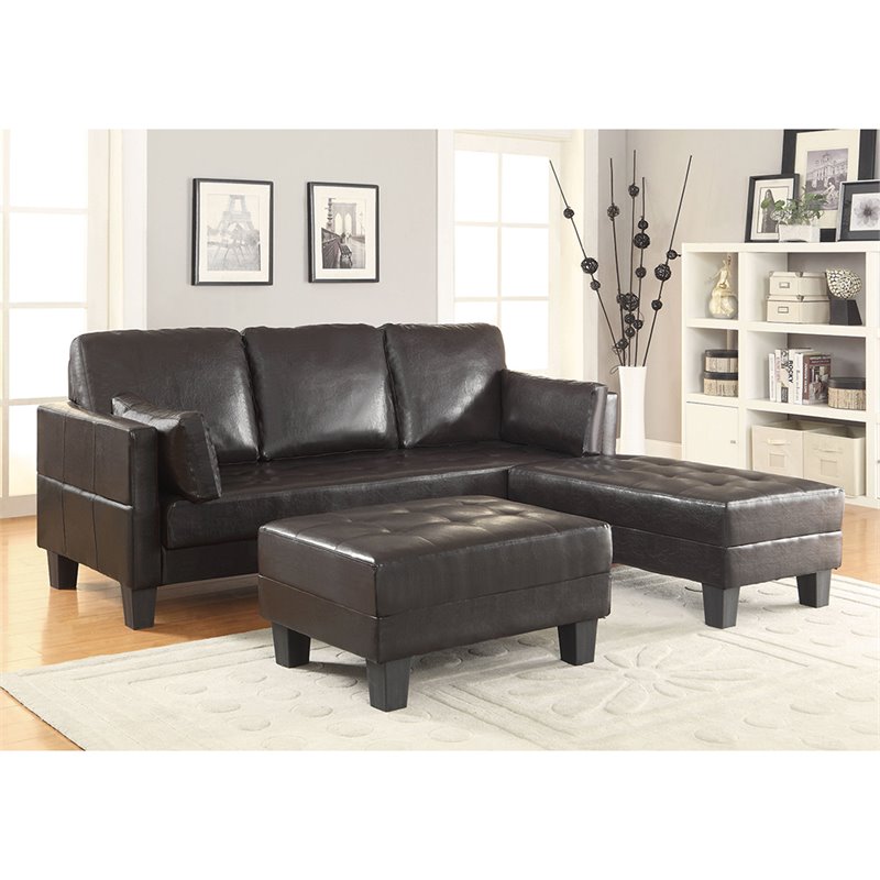 Darie Black Bonded Leather Sectional Sofa