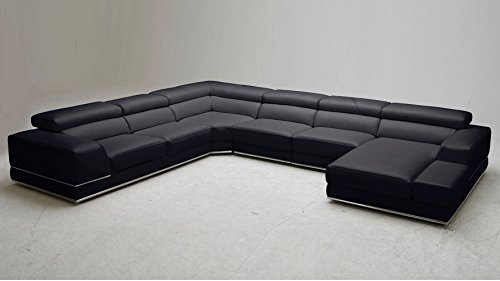 Wynn Black Leather Sectional Sofa With Adjustable Headrests