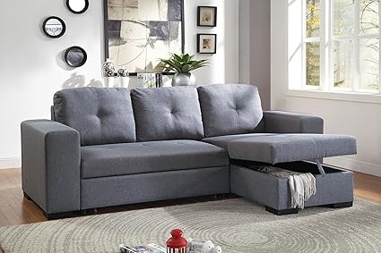 Infinity Convertible Sectional Sofa With Pull Out Bed Storage Chaise Blue Gray Fabric From Houzz Bhg Com Shop
