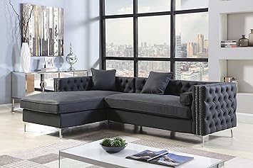 Iconic Home Da Vinci Left Hand Facing Sectional Sofa L Shape Chaise Pu Leather Button Tufted With Silver Nailhead Trim Silvertone Metal Leg With 3