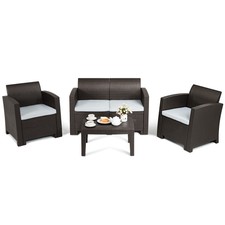Rattan Wicker Sofa Set 4 Piece Sectional Couch Cushioned Furniture Patio Outdoor