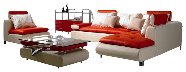 B205 White Red Top Grain Leather Sectional Sofa Set With Chair And Ottoman