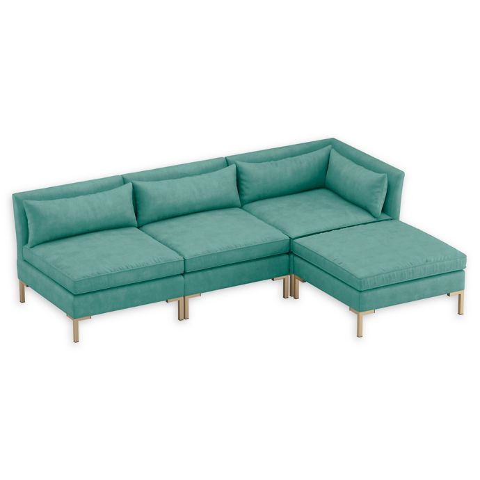 Doyer 3 Piece Open End Microsuede Sectional Sofa With Ottoman