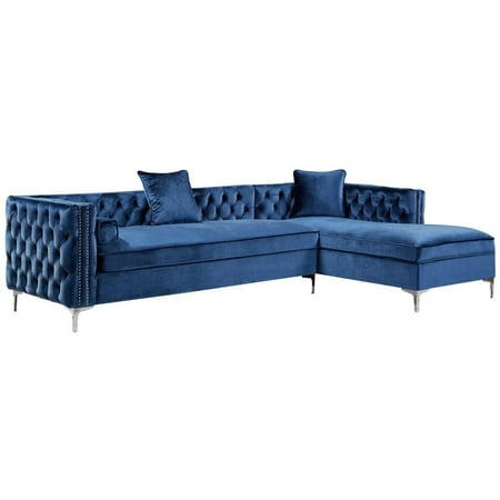 Decker 2 Piece Blue Velvet Sectional Sofa