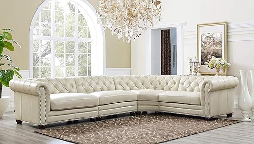 Hydeline Aliso 100 Leather Sectional Sofa 4piece Ivory