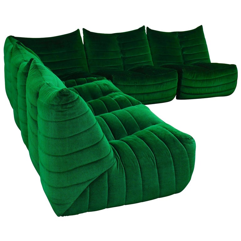 Sectional Sofa In Green Velvet By Gianfranco Grignani Italy