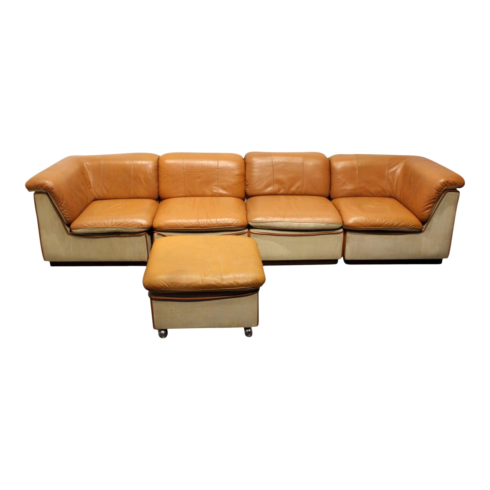 Mid Century Modern Scandinavian Leather And Linen Modular Sectional Sofa
