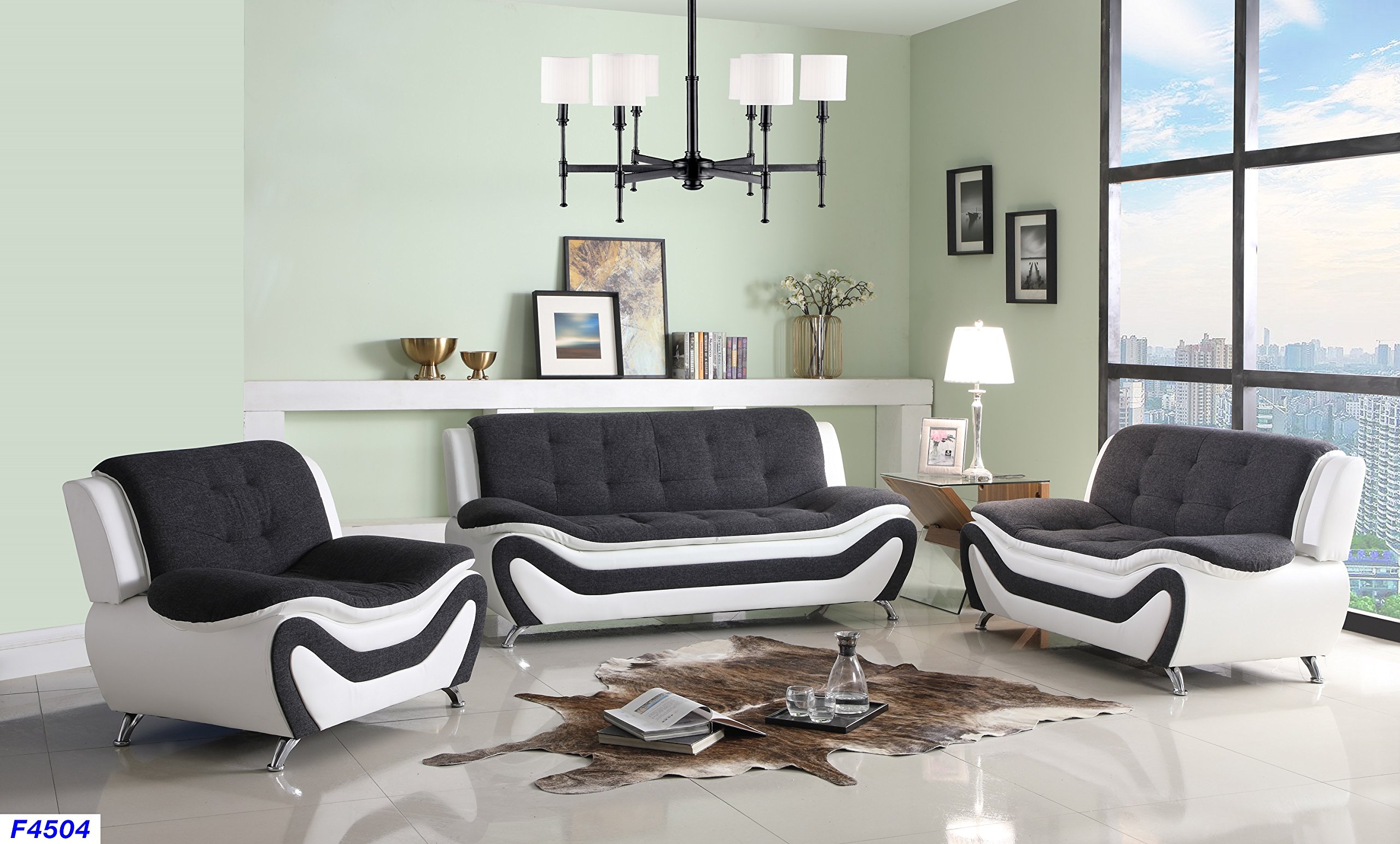 Details About Beverly Fine Furniture F4504 3pc Three Piece Sofa Set Grey Black White