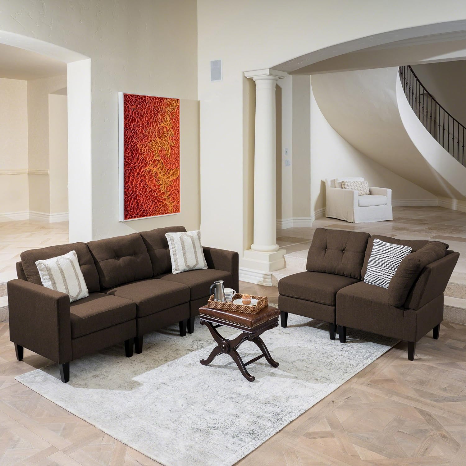 Emma Mid Century Modern 5 Piece Dark Brown Fabric Sectional Sofa