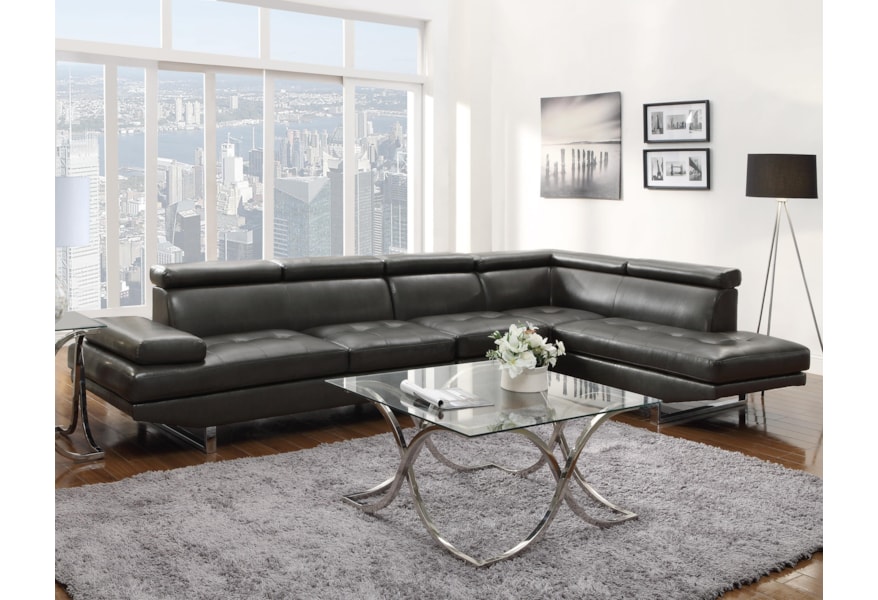 Zuri Furniture Modern Wynn Slate Leather Sectional Sofa With