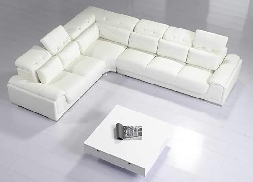 Amazon Com Contemporary White Leather Sectional Sofa W