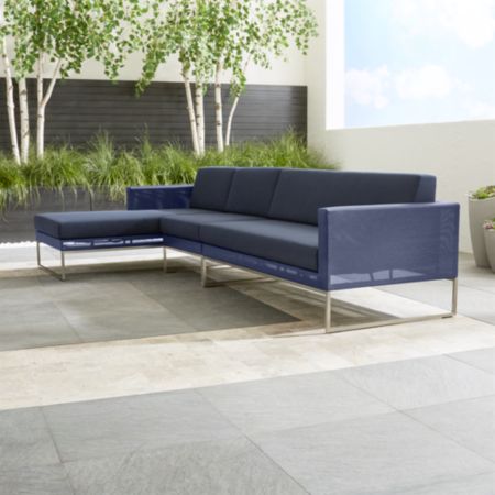 Dune Navy 3 Piece Left Arm Chaise Sectional Sofa With Sunbrella Cushions Crate And Barrel